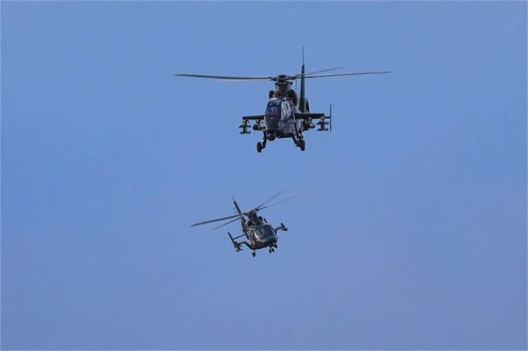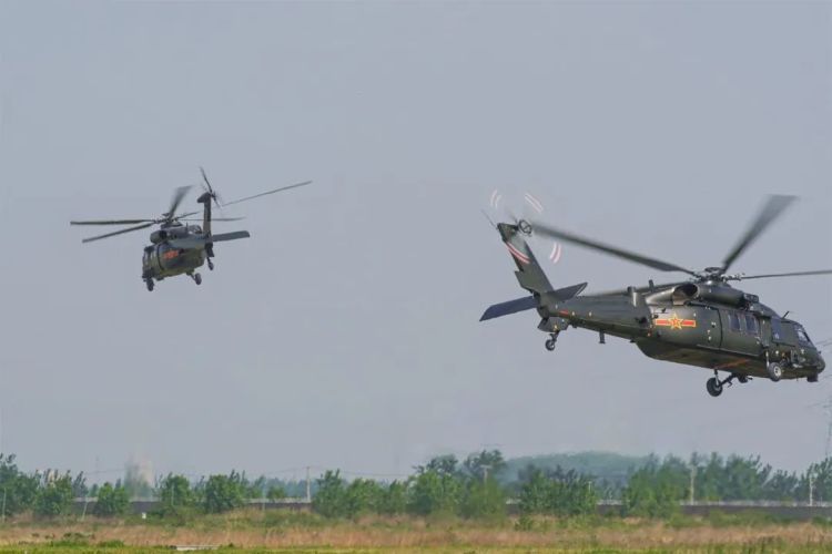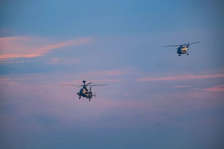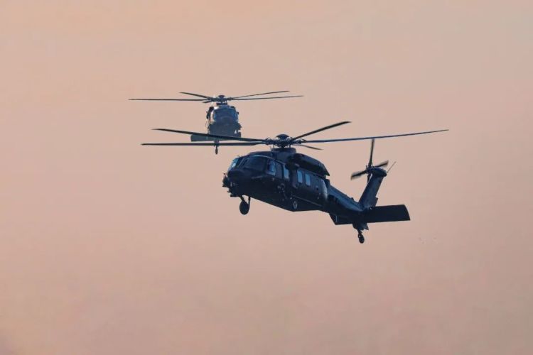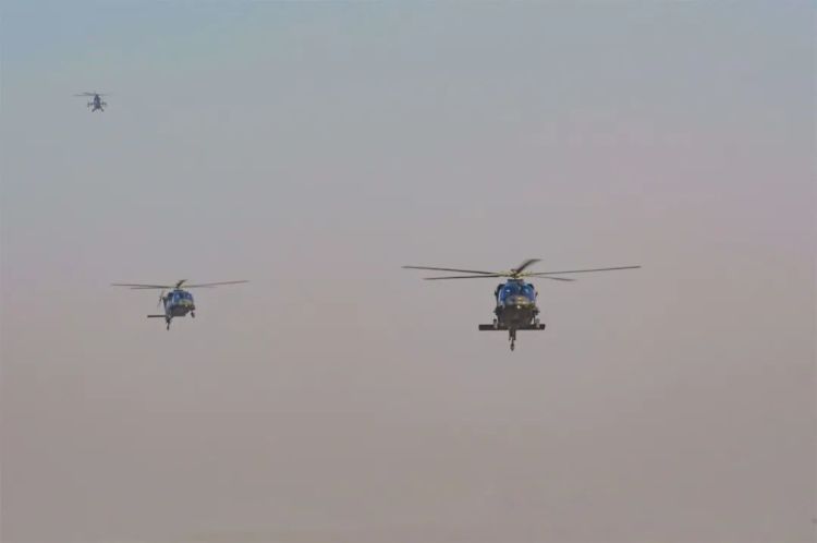 多架直升机依次起飞