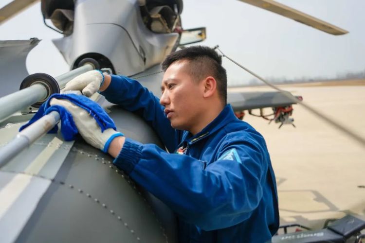 机务官兵认真作业